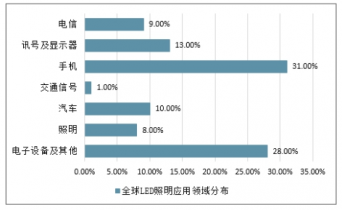 目前,LED產品在手機上應用非常廣泛,是LED產品最重要的應用領域,占市場總需求的31%左右。一般每部手機需用10-20個LED產品,分別使用在手機鍵盤、顯示屏背光源及可照相手機閃光燈上。LED產品在手機市場的滲透率已趨于穩定,未來手機用LED產品的增長空間將受手機銷量的直接影響。