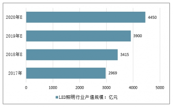 2019年,LED行業(yè)整體進(jìn)入后照明時(shí)代,通用照明市場(chǎng)遭遇替代瓶頸,增長(zhǎng)乏力。。截止到2017年中國(guó)LED照明產(chǎn)值規(guī)模接近3000億元,同比增長(zhǎng)將近21%,全球占比達(dá)到55.40%。而隨著國(guó)際巨頭剝離通用照明業(yè)務(wù),產(chǎn)值規(guī)模將持續(xù)提高。預(yù)計(jì)2019年中國(guó)LED照明行業(yè)產(chǎn)值規(guī)模將達(dá)3415億元,同比增長(zhǎng)15%。并預(yù)測(cè)在2020年中國(guó)LED照明行業(yè)產(chǎn)值規(guī)模將達(dá)到了4450億元,全球占比有望達(dá)到61%。
