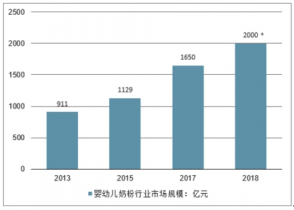 中國是全球第二大嬰童消費市場,嬰幼兒奶粉行業發展有著天然優勢,市場規模更是逐年遞增。2006年以來,我國嬰幼兒奶粉行業快速發展,2015年市場規模達到1129億元,復合增速高達22%,其中銷量復合增速高達15%, 2017年為1650億元,年均復合增長率達到16%,2019年中國嬰幼兒奶粉行業市場規模將有望突破2000億元。