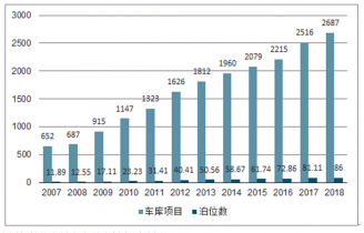 2007-2018年中國機械停車設備車庫項目及泊位數量情況