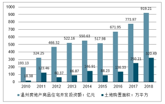2010-2018年溫州房地產(chǎn)商品住宅開(kāi)發(fā)投資額有土地購(gòu)置面積走勢(shì)