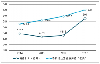2014-2017年中國染料市場銷售收入及總產值走勢