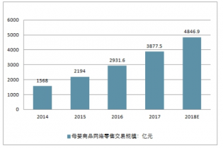 2014-2018年中國母嬰商品網(wǎng)絡零售交易規(guī)模走勢
