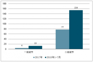 2017-2018年1-7月中國各級城市房地產(chǎn)流拍情況