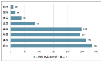 2017 年人均化妝品消費(fèi)額(美元)