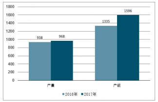 2016-2017年全國鉀肥產(chǎn)量及產(chǎn)能情況(單位:萬噸)