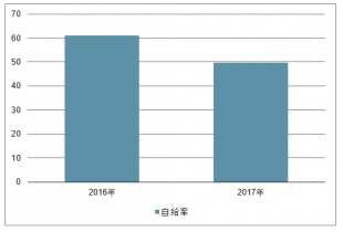 2016-2017年全國鉀肥自給率情況(單位:%)