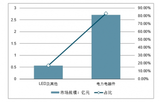 電力電子器件應用市場規模為2.71億元,占比為82.87%;LED及其他應用市場規模為0.56億元,占比為17.13%,近年來LED及其他領域的應用占比呈不斷增長態勢。