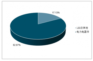 電力電子器件應用市場規模為2.71億元,占比為82.87%;LED及其他應用市場規模為0.56億元,占比為17.13%,近年來LED及其他領域的應用占比呈不斷增長態勢。