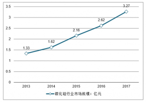 2013-2017年我國碳化硅行業市場規模走勢