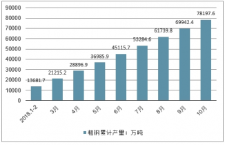 2018年1-10月中國粗鋼產(chǎn)量及增長走勢
