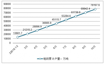 2018年1-10月中國粗鋼產(chǎn)量走勢