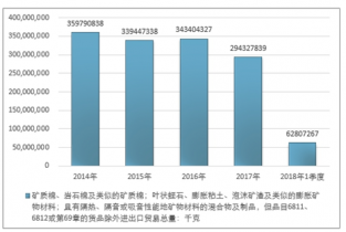 2016年我國礦質棉、巖石棉及類似的礦質棉;葉狀蛭石、膨脹粘土、泡沫礦渣及類似的膨脹礦物材料;具有隔熱、隔音或吸音性能地礦物材料的混合物及制品,但品目6811、6812或第69章的貨品除外進出口貿易總量343404327千克 ,2017年進出口貿易總量294327839千克 ;2018年1季度進出口貿易總量62807267千克 。