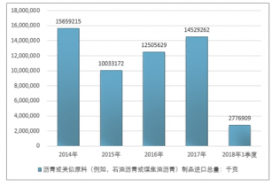 2016年我國瀝青或類似原料(例如,石油瀝青或煤焦油瀝青)制品進(jìn)口總量12505629千克 ,2017年進(jìn)口總量14529262千克 ;2018年1季度進(jìn)口總量2776909千克 。