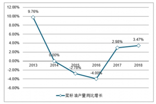 2013-2018年中國菜籽油產(chǎn)量同比增長勢(shì)