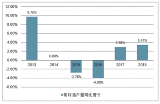 2013-2018年中國菜籽油產量同比增長勢