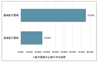 目前來看,我國醫療器械行業市場中,高端醫療器械市場僅占比25%左右,且該市場的絕大部分都被國外廠商把持。我國多數企業仍處于中低端醫療器械領域,中低端市場規模在中國整個醫療器械市場中的占比高達75%左右。