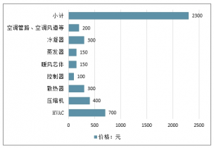 傳統(tǒng)乘用車空調(diào)系統(tǒng)組件及單價(jià)