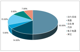 汽車電動化對汽車零部件行業(yè)帶來較大影響,一方面?zhèn)鹘y(tǒng)動力系統(tǒng)零部件將受到?jīng)_擊, 主要包括發(fā)動機(jī)、渦輪增壓、變速器、燃油系統(tǒng)、排氣系統(tǒng)、油箱系統(tǒng)等,另一方面對 新能源汽車三電系統(tǒng)電池、電機(jī)、電控及熱管理系統(tǒng)的需求將增加,尤其動力系統(tǒng)的成 本占比達(dá)到 50%,占比最高。