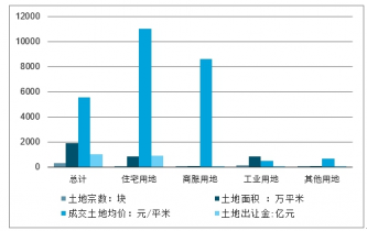 2019年天津市土地市場(chǎng)共成交土地311宗,土地面積為1886.63萬平方米,成交土地均價(jià)5556.71元/平方米,土地出讓金1048.35億元。其中住宅用地成交102宗,土地面積近830.03萬平方米,成交土地均價(jià)11028元/平方米,土地出讓金915.38億元;工業(yè)用地成交169宗,土地面積849.71萬平方米,成交土地均價(jià)520元/平方米,土地出讓金44.16億元。商服用地成交29宗,土地面積94.43萬平方米,成交土地均價(jià)8602元/平方米,土地出讓金81.24億元。其他用地成交11宗,土地面積112.45萬平方米,成交土地均價(jià)674元/平方米,土地出讓金7.58億元。可見下表: