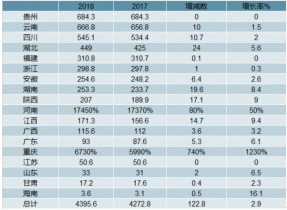2017-2018年中國主要產省茶園面積情況(萬畝)