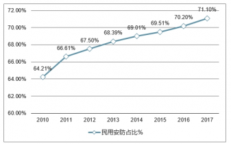 國民用安防市場發展迅猛,2017年民用安防市場規模達4302億元,占安防整體市場的71.11%。