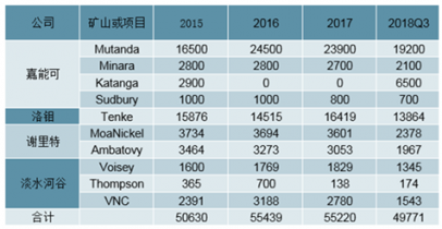 鈷供給集中度高,少數企業掌握供給控制權。2017 年全球鈷的總供應量約為 12.3 萬金屬噸。其中,嘉能可、洛陽鉬業兩家合計提供了 4.38 萬噸金屬鈷,占全球總產量的 35.6%。 2018 年前三季度四家鈷主要供應商總產量約 4.97 萬噸,同比上漲 23.1%。