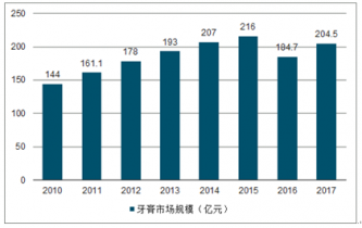 2010-2017年中國(guó)牙膏行業(yè)市場(chǎng)規(guī)模