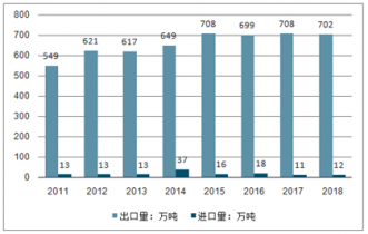 2011-2018年中國鋼結(jié)構(gòu)行業(yè)進出口量分析