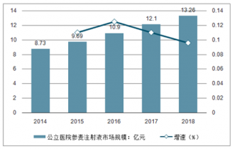 2014-2018年公立醫院參麥注射液市場規模及增速