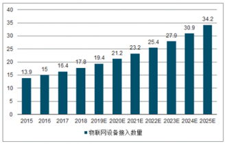 2019年物聯網連接數已經達到了70億,到2020年,活躍的物聯網設備數量預計將增加到100億個,到2025年將增加到220億個。