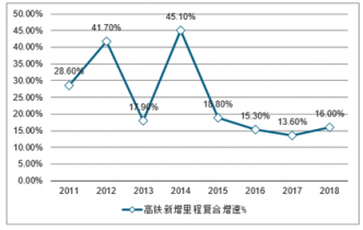 2011年-2018年高鐵新增里程復合增速走勢