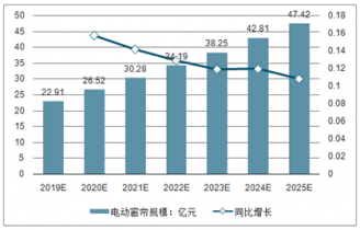 2019-2025電動(dòng)窗簾規(guī)模(億元)