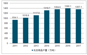 2011-2017年中國(guó)洗滌用品產(chǎn)量(萬(wàn)噸)