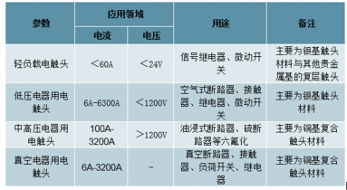 電接觸材料按照應(yīng)用領(lǐng)域的不同分類