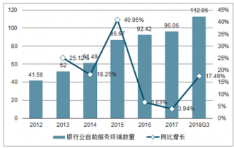 2012-2018年銀行業自助服務終端保有量及增長