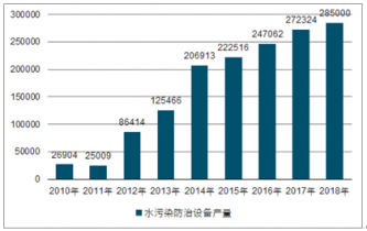 2018年我國水污染防治設備產量在28.50萬臺左右。