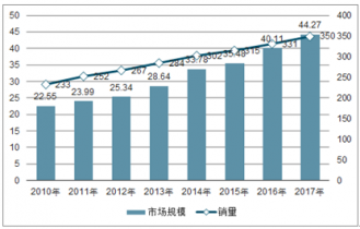 2010-2017年中國大型鐵路養路機械市場規模(億元)