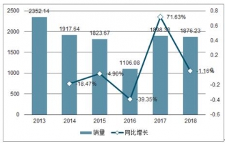 2013-2019年中國(guó)刨花板銷(xiāo)量及增長(zhǎng)