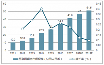 2016年我國互聯網婚戀交友市場規模為34.1億元,較2015年增長26.3%,預計至2019年中國互聯網婚戀交友市場規模將超過51.5億元,未來中國互聯網婚戀交友市場將保持較高的增長速度。