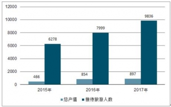 2015-2017年中國海島旅游業增加值及接待的旅游人數