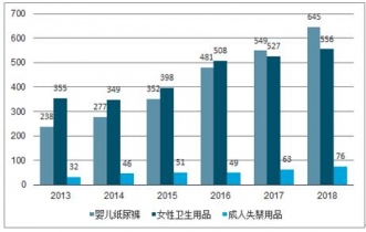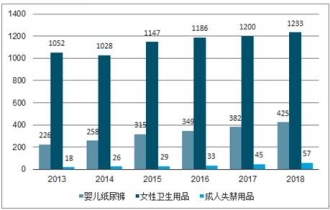 2013-2019年中國一次性衛(wèi)生用品細(xì)分市場規(guī)模