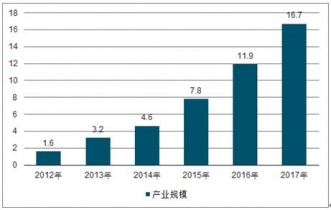 2012-2017年中國增材制造產業規模