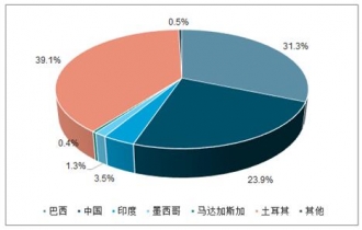 中國石墨資源豐富,其基礎(chǔ)儲量占世界總儲量的24%左右,2016年石墨基礎(chǔ)儲量達(dá)到了7321.51萬噸,其中已探明晶質(zhì)石墨的儲量達(dá)到了3億噸。中國石墨的產(chǎn)量也位居世界前列,2017年中國石墨的產(chǎn)量已經(jīng)達(dá)到了78萬噸。