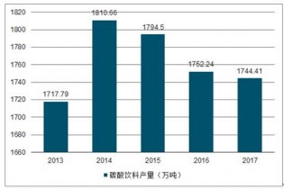 2013-2017年中國碳酸飲料產(chǎn)量情況