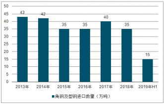 2013-2019H1中國角鋼及型鋼進口數量趨勢圖