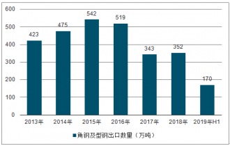 2013-2019H1中國角鋼及型鋼出口數量趨勢圖