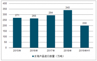 2015-2019H1中國水海產品進口數量趨勢圖