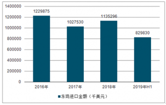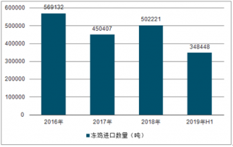2016-2019H1中國凍雞進口數量及出口金額統計表