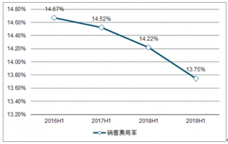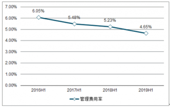 2019年上半年,行業(yè)期間費(fèi)用率較2019年同期下降1.11個(gè)百分點(diǎn)至18.25%。其中,銷售費(fèi)用率及管理費(fèi)用率均有一定程度的下降。從近幾年情況來(lái)看,食品飲料行業(yè)期間費(fèi)用率長(zhǎng)期呈現(xiàn)下降趨勢(shì)。